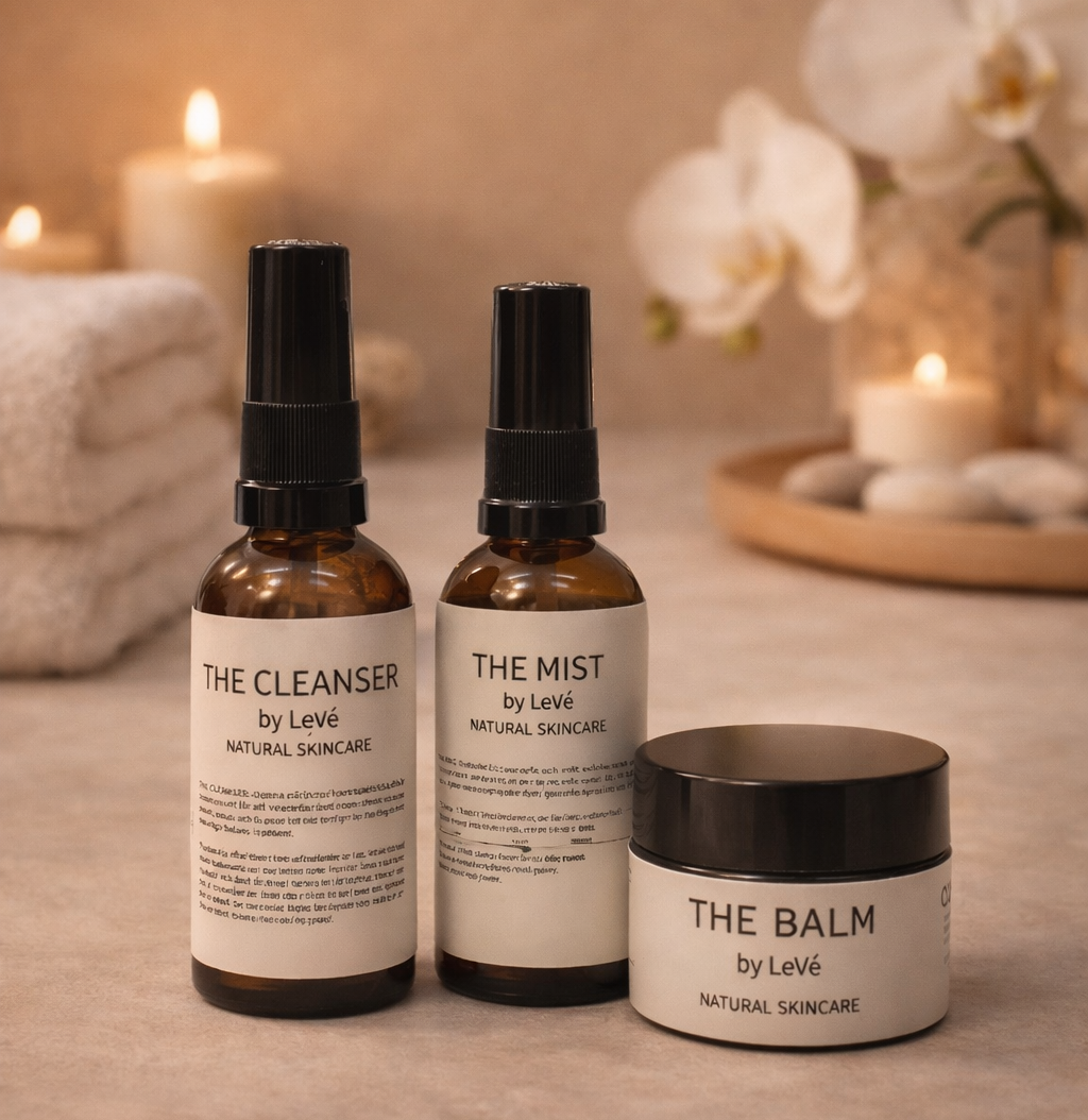 LeVés 3-stegs hudvårdsrutin är framtagen för att rengöra, återfukta och skydda huden med naturliga ingredienser – utan att störa hudens egen rytm.